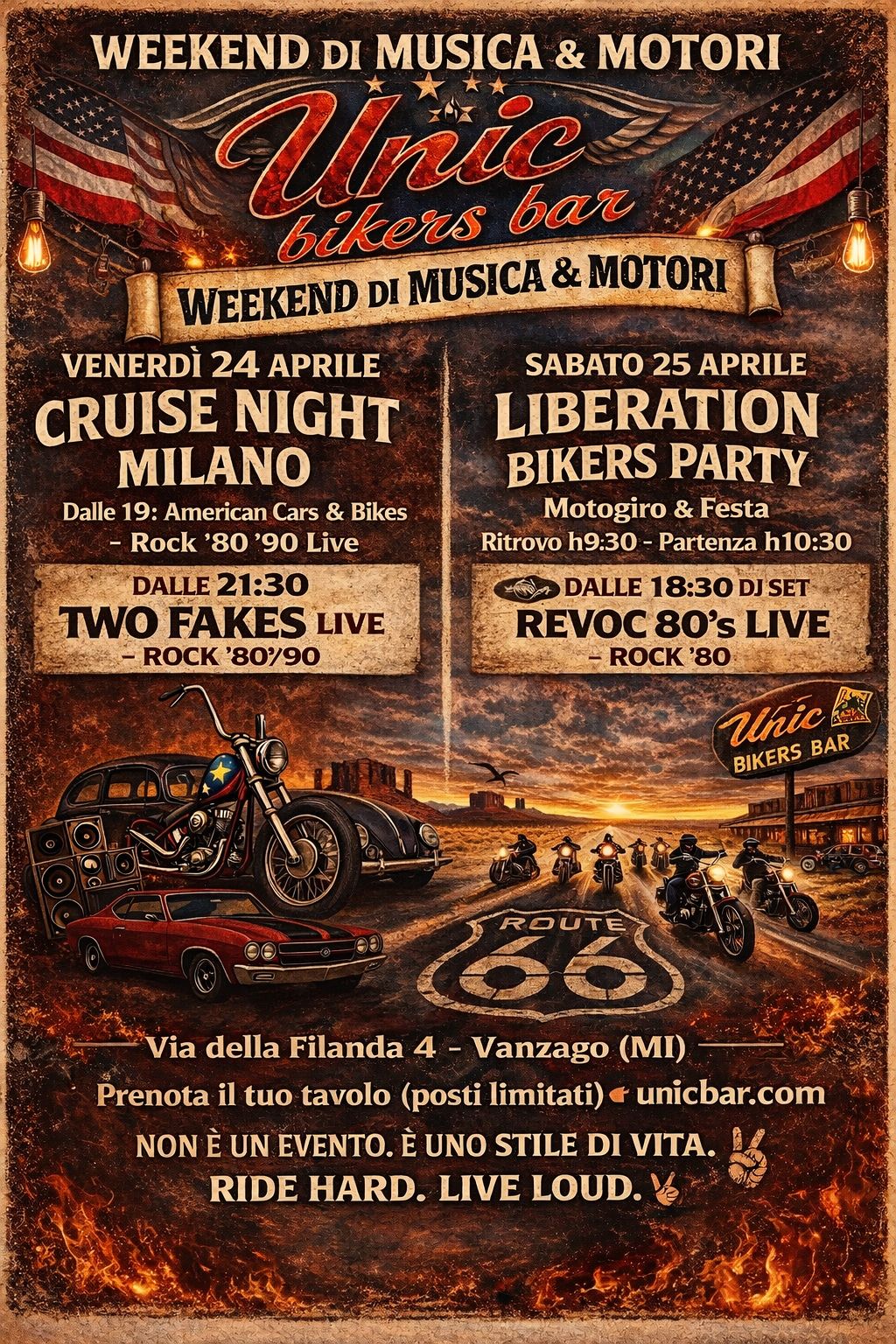 Dalle 19 il locale si trasforma in una vera Route 66:
